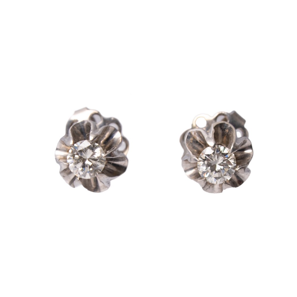 ORECCHINI in oro bianco 18 KT con diamanti taglio brillante ct. 0,20 peso di stima J COLOR VVS2, perno a vite (g. 2,30)