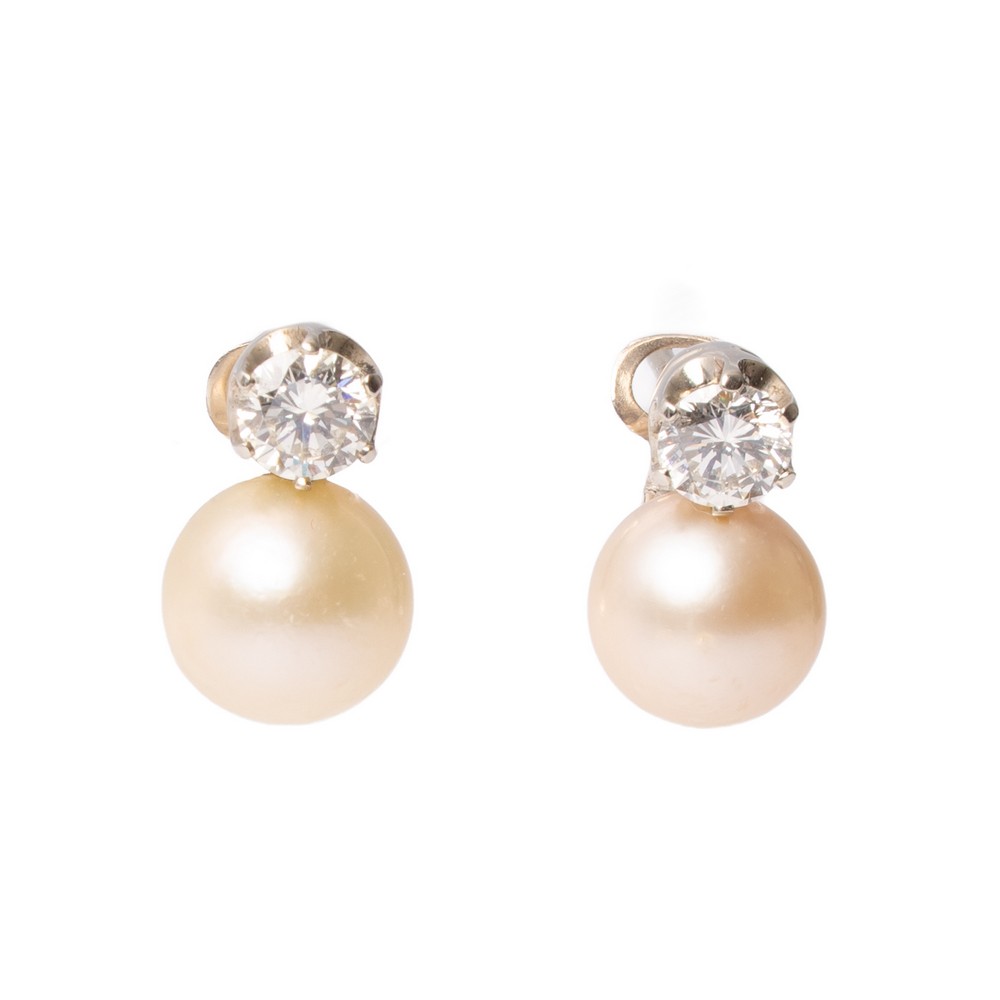 ORECCHINI in oro bianco 18 KT con diamanti taglio brillante ct. 0,80 peso di stima J/K COLOR VS2/SI1 e perle coltivate (g. 6,30).