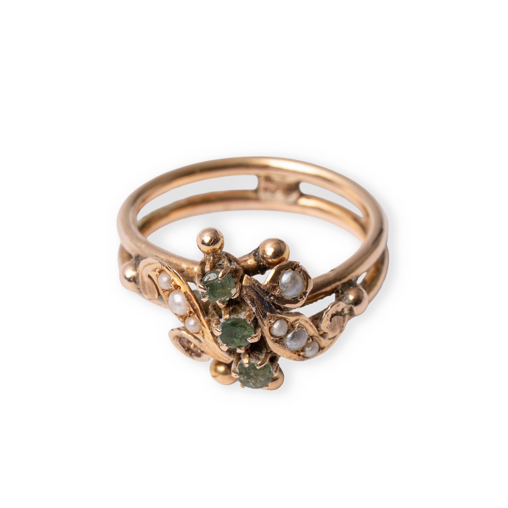 ANELLO in oro giallo 18 KT con pietre semipreziose e madreperla (g. 2,70) (mancanza).