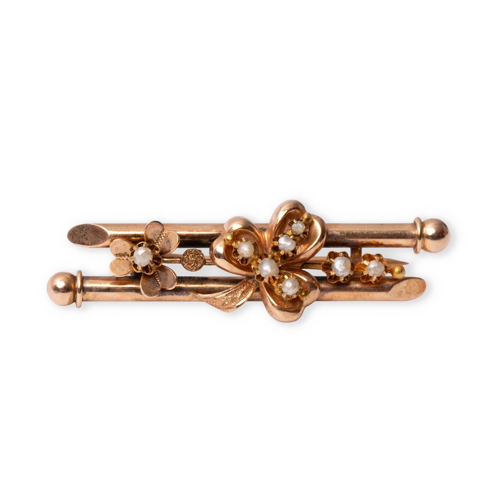 SPILLA in oro giallo 9 KT con perline (g. 5,50).