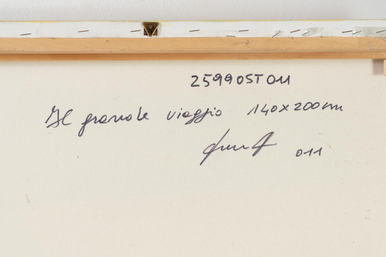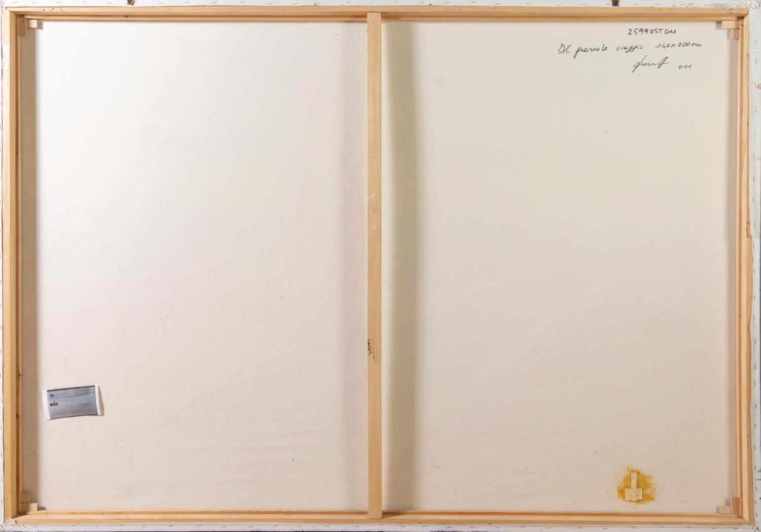 Olio su tela, firmato in basso a destra, reca al retro cifre "25990ST011", titolo e firma, H cm 140x200x4,5