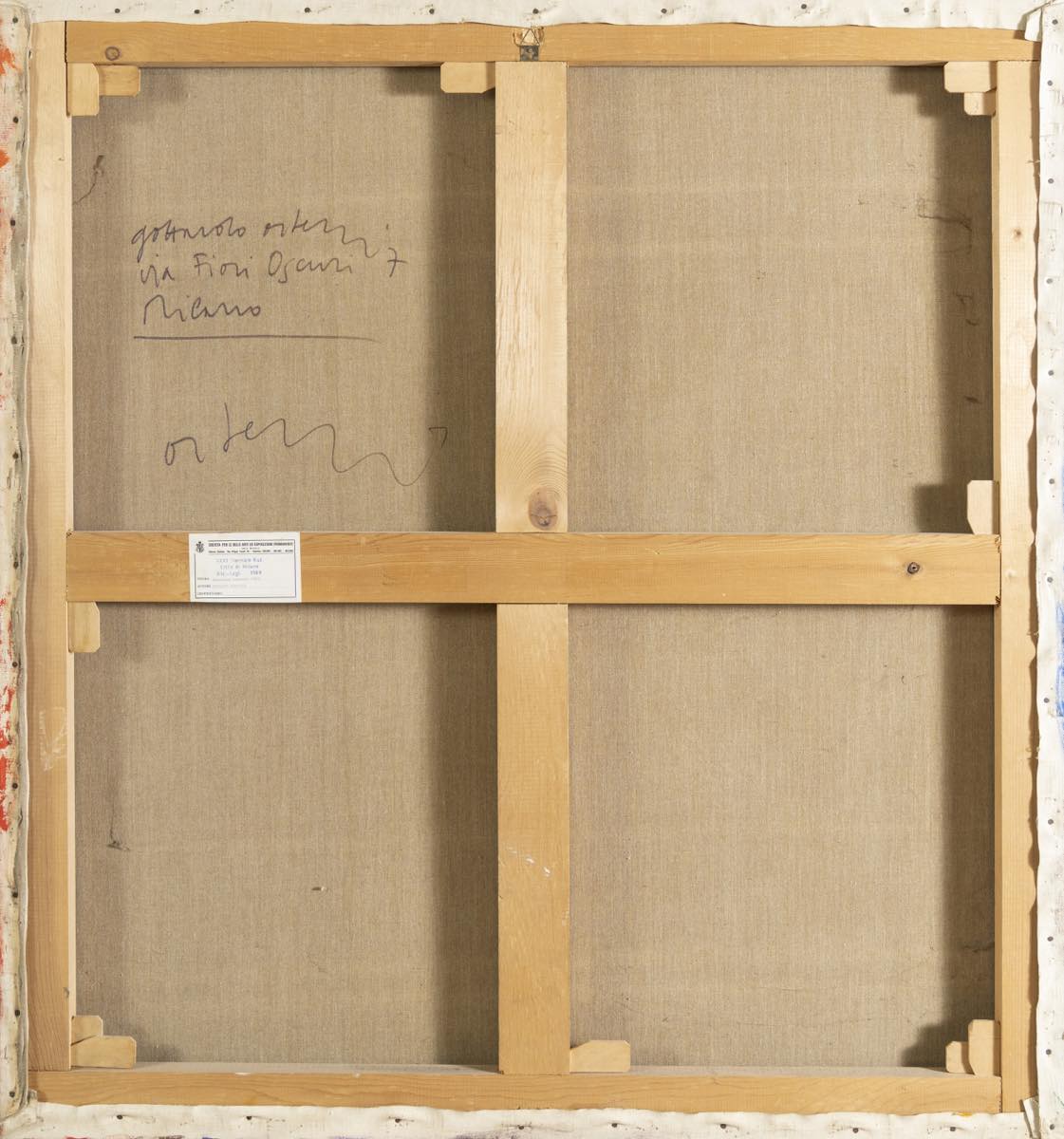 Olio su tela, al retro reca firma e etichetta della XXXI Biennale Nazionale, H cm 130x120
