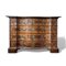 Canterano a quattro cassetti a fronte mosso, lastronato in radica di noce e filetti in acero. Schiena originale e maniglie coeve. XVIII secolo, Bologna. Cm 100x111x66.
