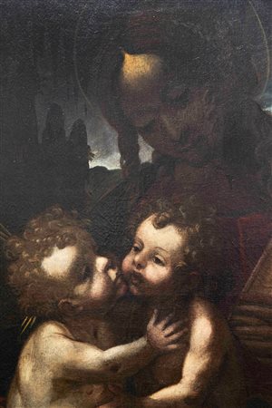 LEONARDO DA VINCI Ambito di, derivazione senese. Seconda metà del XVI secolo, "Madonna con Bambino". Olio su tela. Cm 83x76.