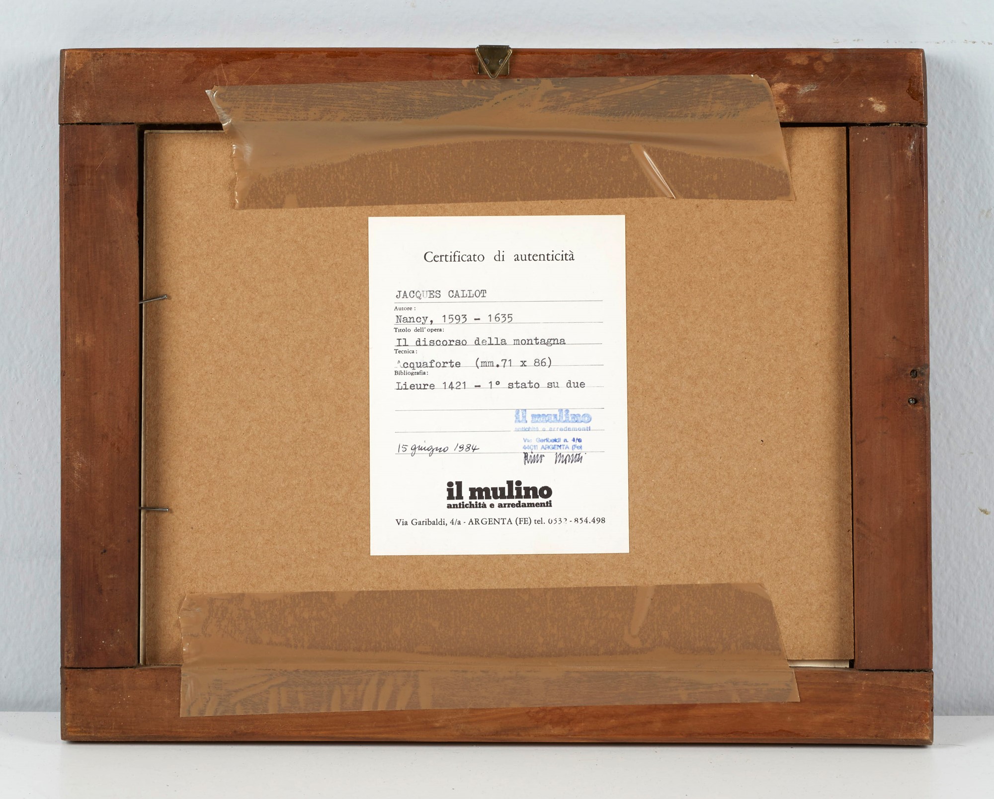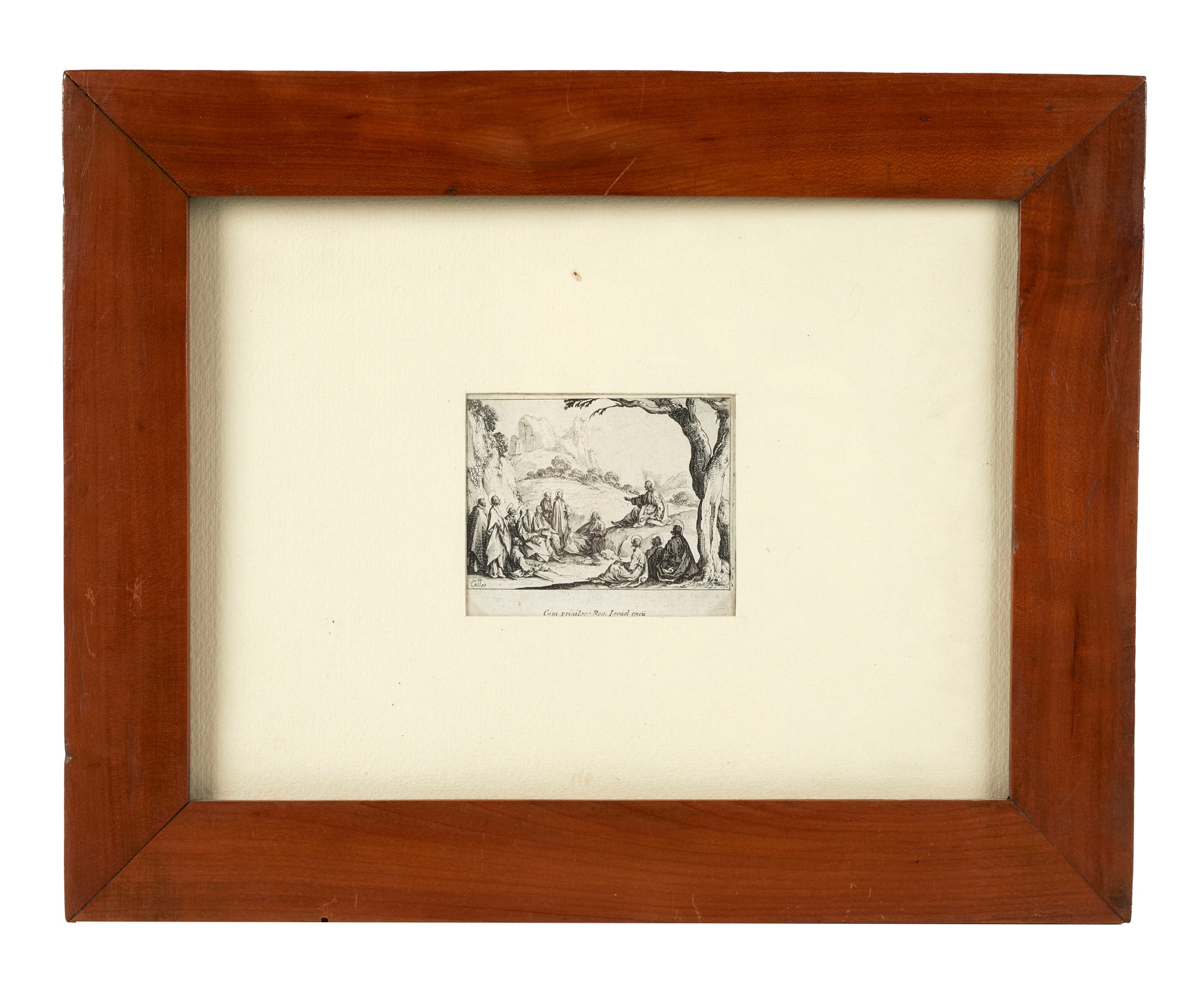 JACQUES CALLOT (Nancy 1593 - 1635) "Il discorso della montagna". Acquaforte su carta. Cm 7,1x8,6.
