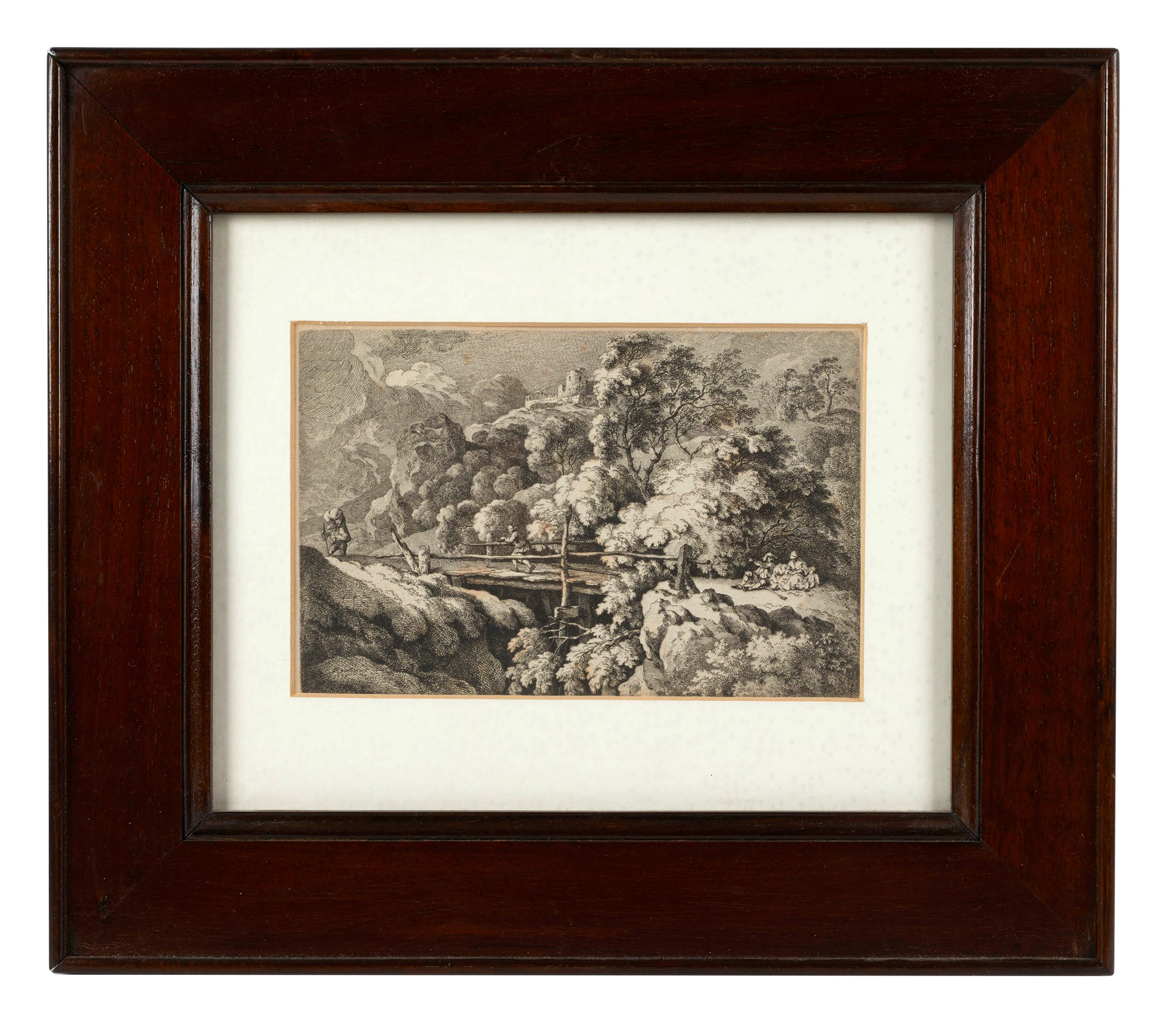 FERDINAND KOBELL (Mantineim 1740 - Monaco 1799) "Paesaggio con ponticello". Acquaforte su carta. Cm 13x20.