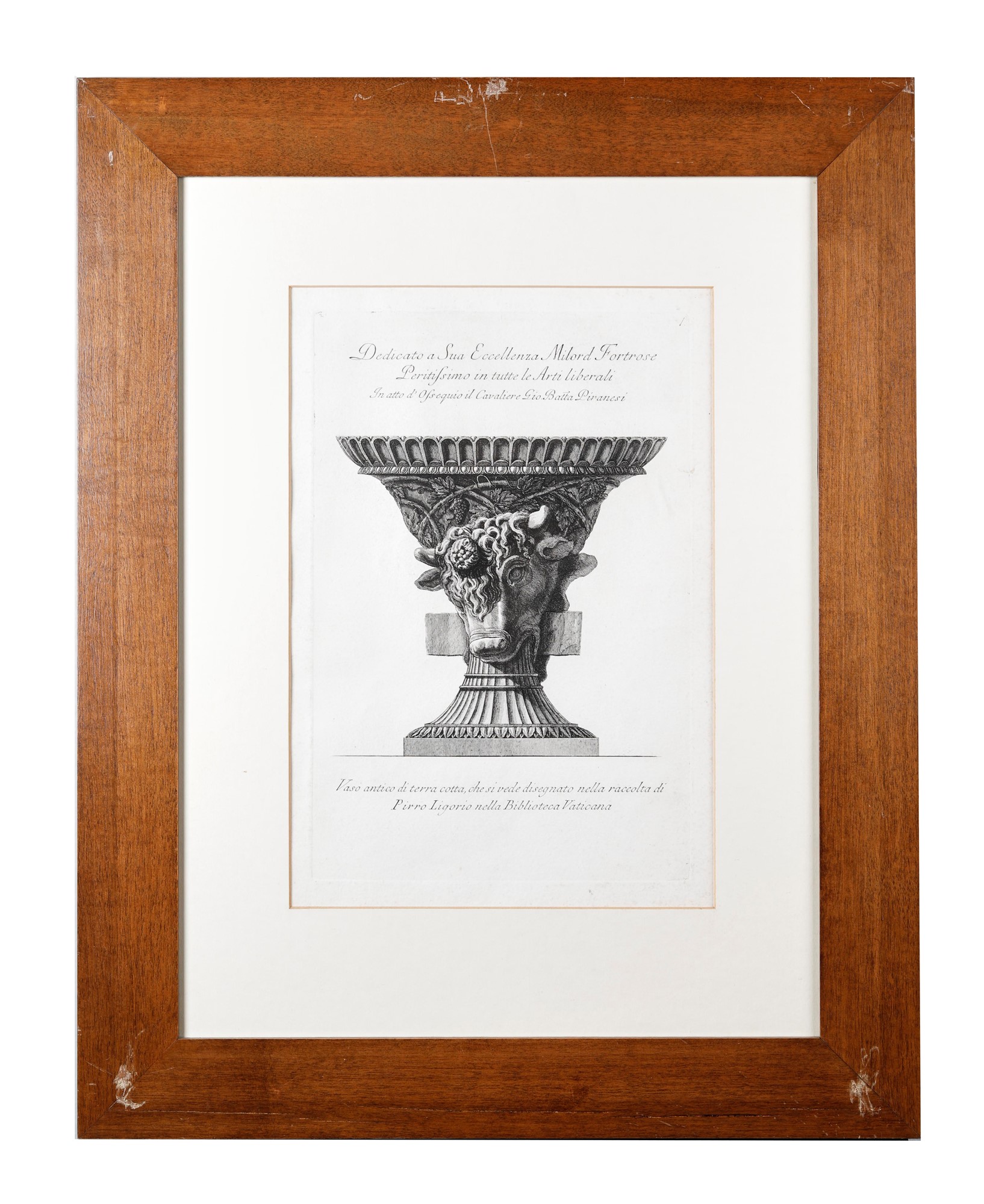 FRANCESCO PIRANESI (Roma 1758 - Parigi 1810) "Vaso antico di terra cotta, che si vede disegnato nella raccolta di Pirro Ligorio nella Biblioteca Vaticana". Acquaforte. Cm lastra: 39x24,5.
