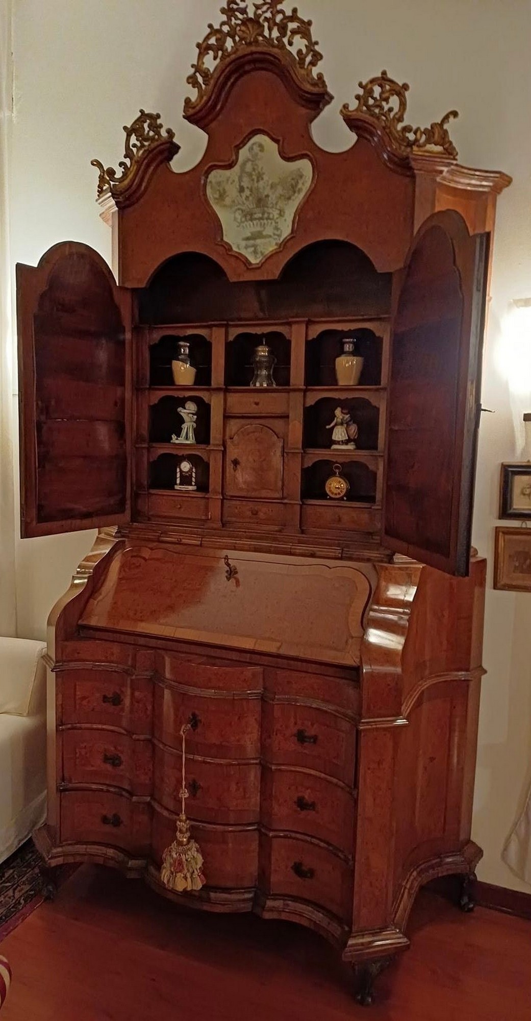 Trumeau mosso sul fronte e sui fianchi cimasa in legno dorato specchi incisi stile Luigi XV