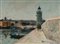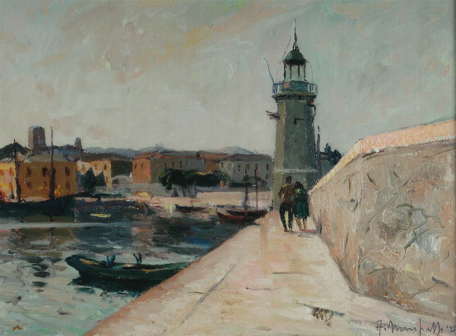 Lotto 94 | MUCCHETTI ANGELO (1912 - 1960) Paesaggio con faro e coppia che passeggia....