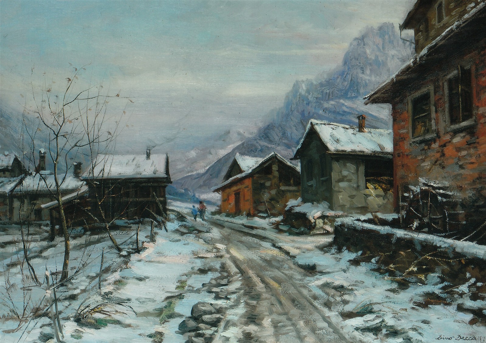 Lotto 95 | DECCA DINO (1935 - 2005) Inverno. Olio su tavola. Cm 70,00 x 50,00. Firma in...