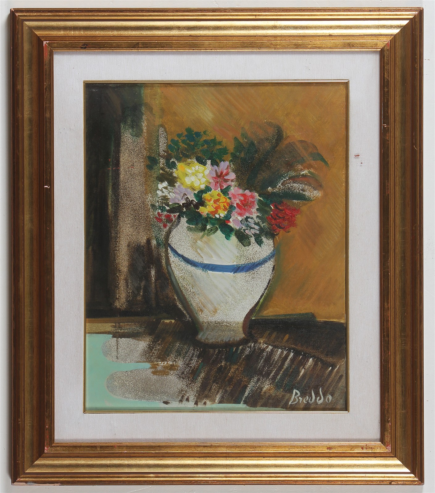 BREDDO GASTONE (1915 - 1991) Vaso di fiori. Olio su tela . Cm 40,00 x 50,00. Firma in basso a destra. Cornice presente