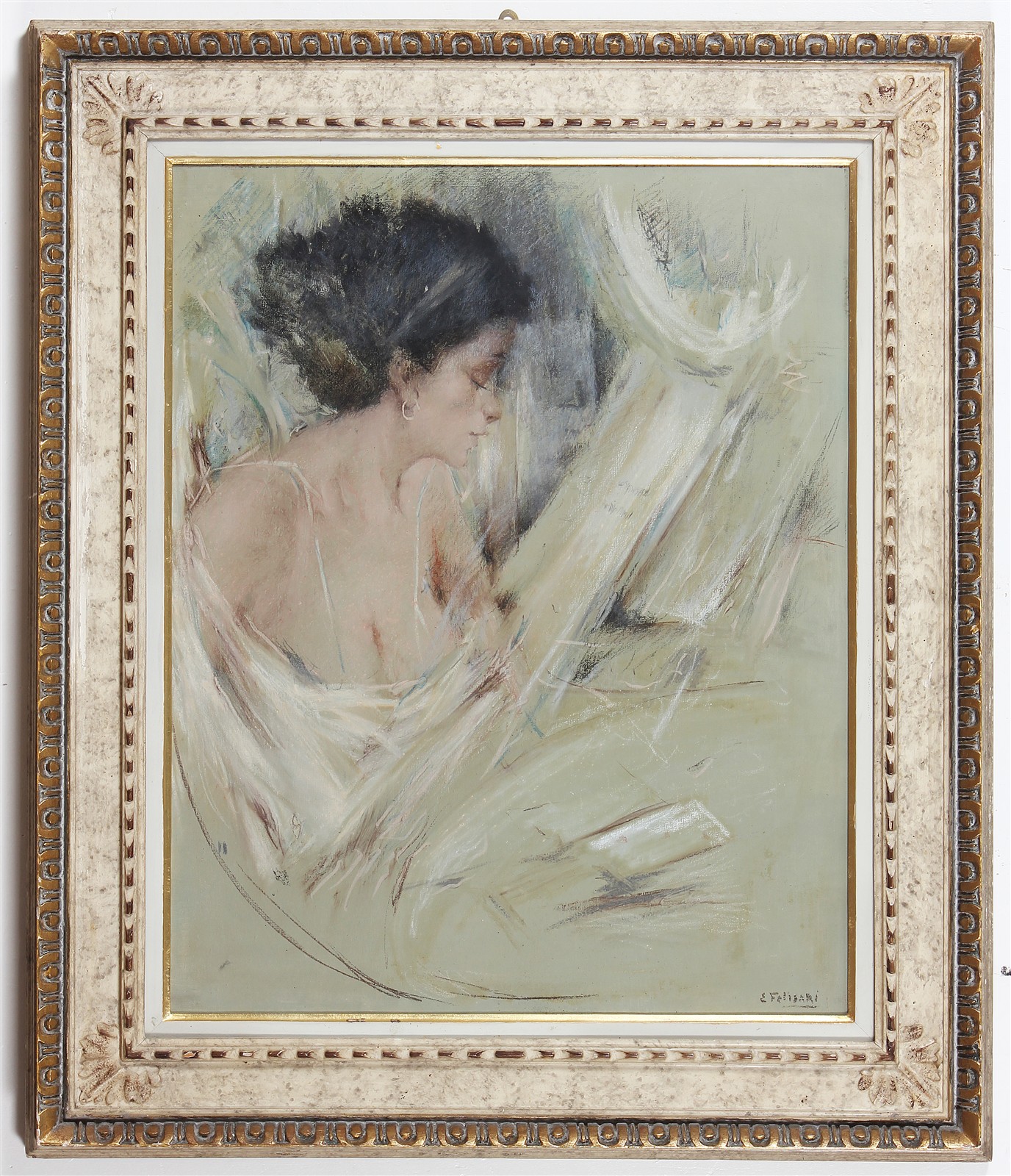 FELISARI ENRICO (1897 - 1981) Donna in lettura. Olio su tela . Cm 60,00 x 75,00. Firma in basso a destra e firma al retro.