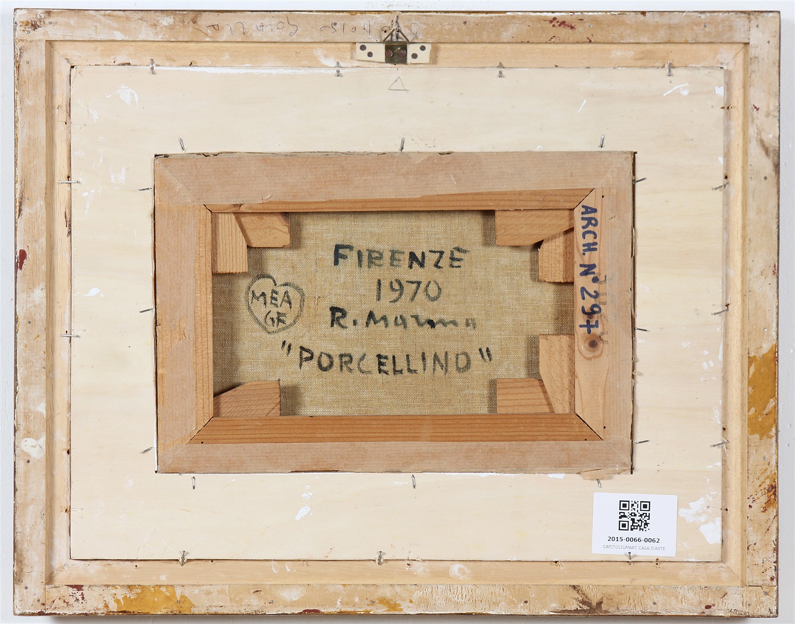 MARMA RODOLFO (1923 - 1999) Porcellino. 1970. Olio su tela . Cm 30,00 x 20,00. Firma e anno in basso a destra. Al retro titolo, firma e anno. Certificato di autenticità a cura di Firenzeart, Rodolfo Marma - Archivio ufficiale delle opere. Cornice presente
