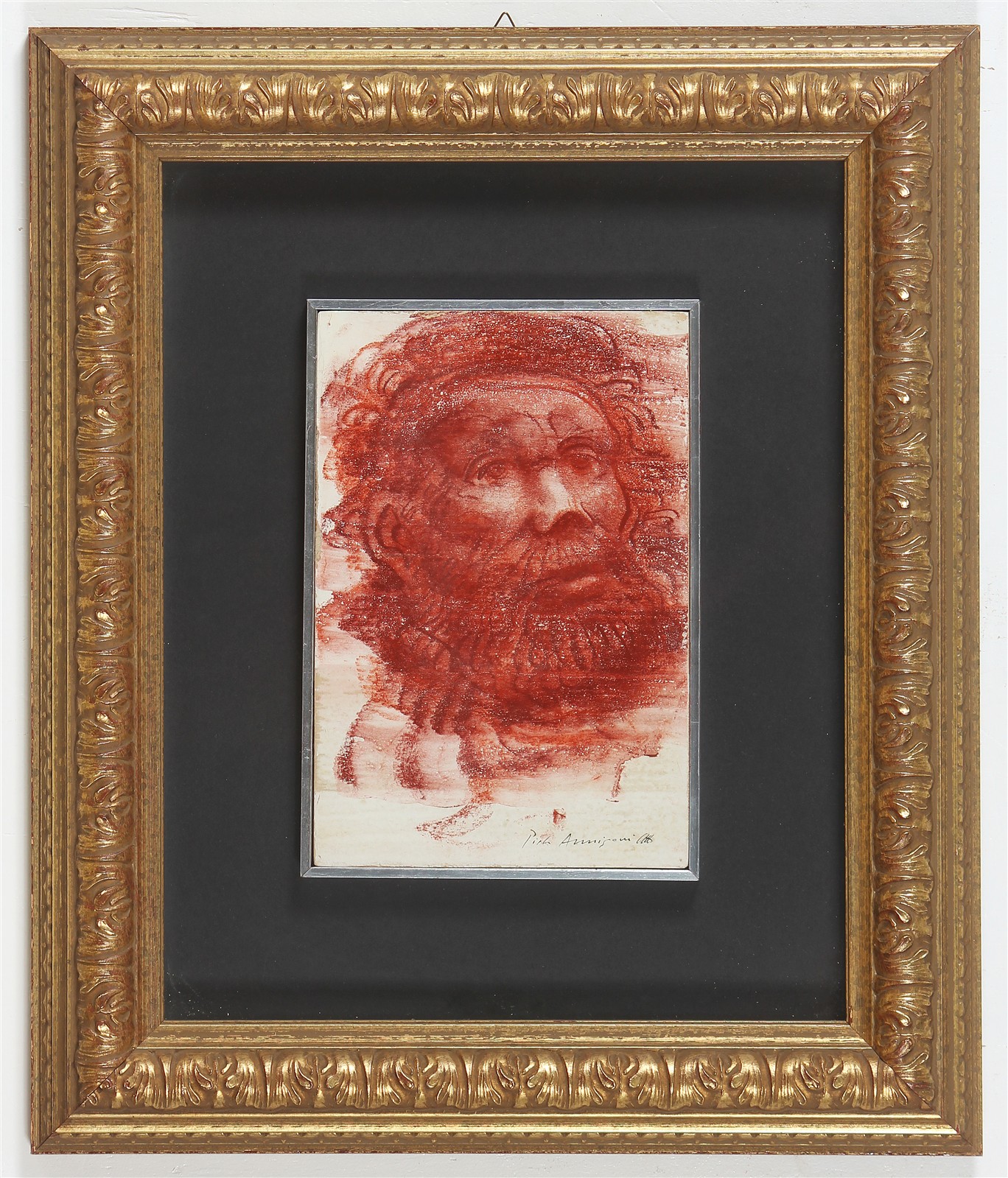 ANNIGONI PIETRO (1910 - 1988) Senza titolo. Sanguigna. Cm 30,00 x 20,00. Firma in basso a destra. Opera archiviata presso l'Archivio Dell'Opera di Pietro Annigoni, come da documentazione fotografica allegata all'opera riportante il relativo numero di archivio e la firma di Rossella Segreto Annigoni. Cornice presente