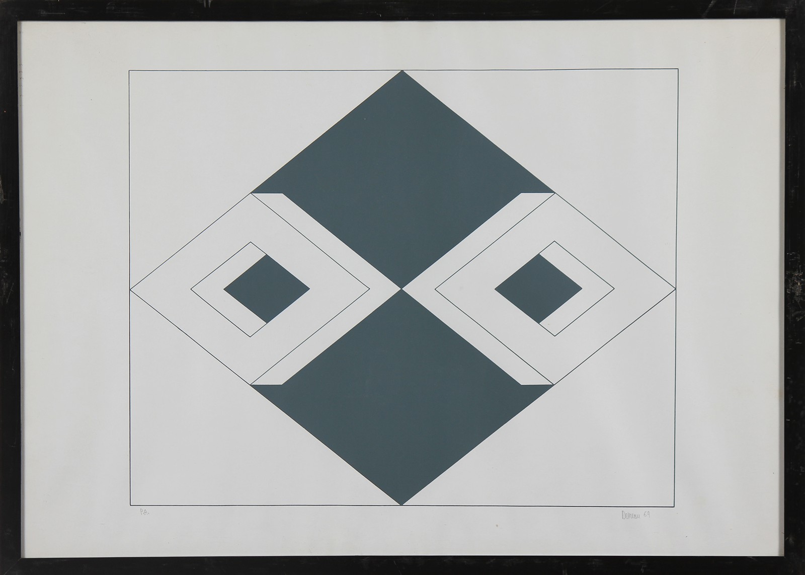 ANONIMO Senza titolo. 1969. Litografia. Cm 70,00 x 50,00. P.A. Tiratura a matita in basso a sinistra. Firmato e datato a matita in basso a destra. Cornice presente