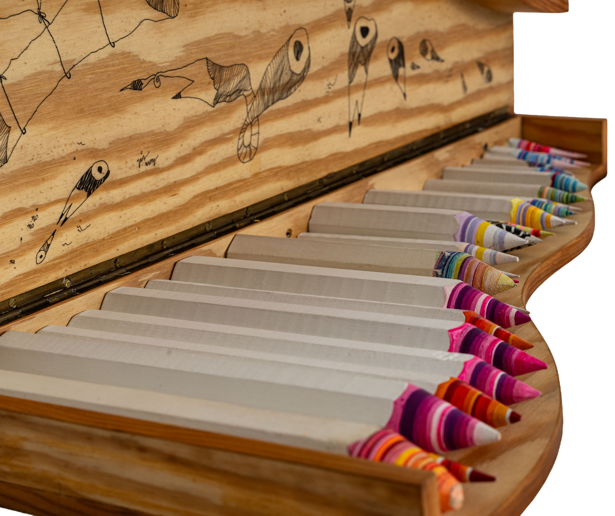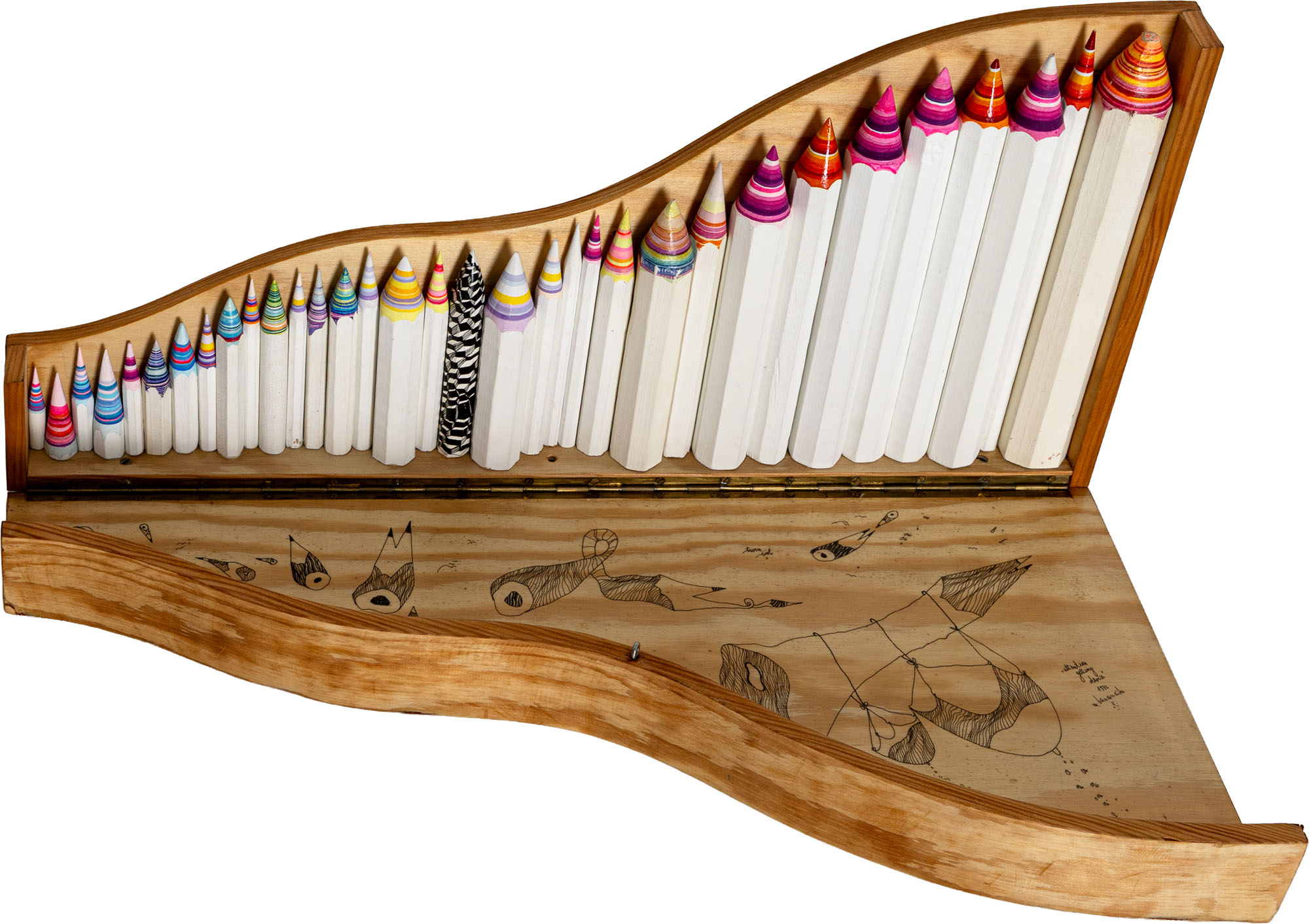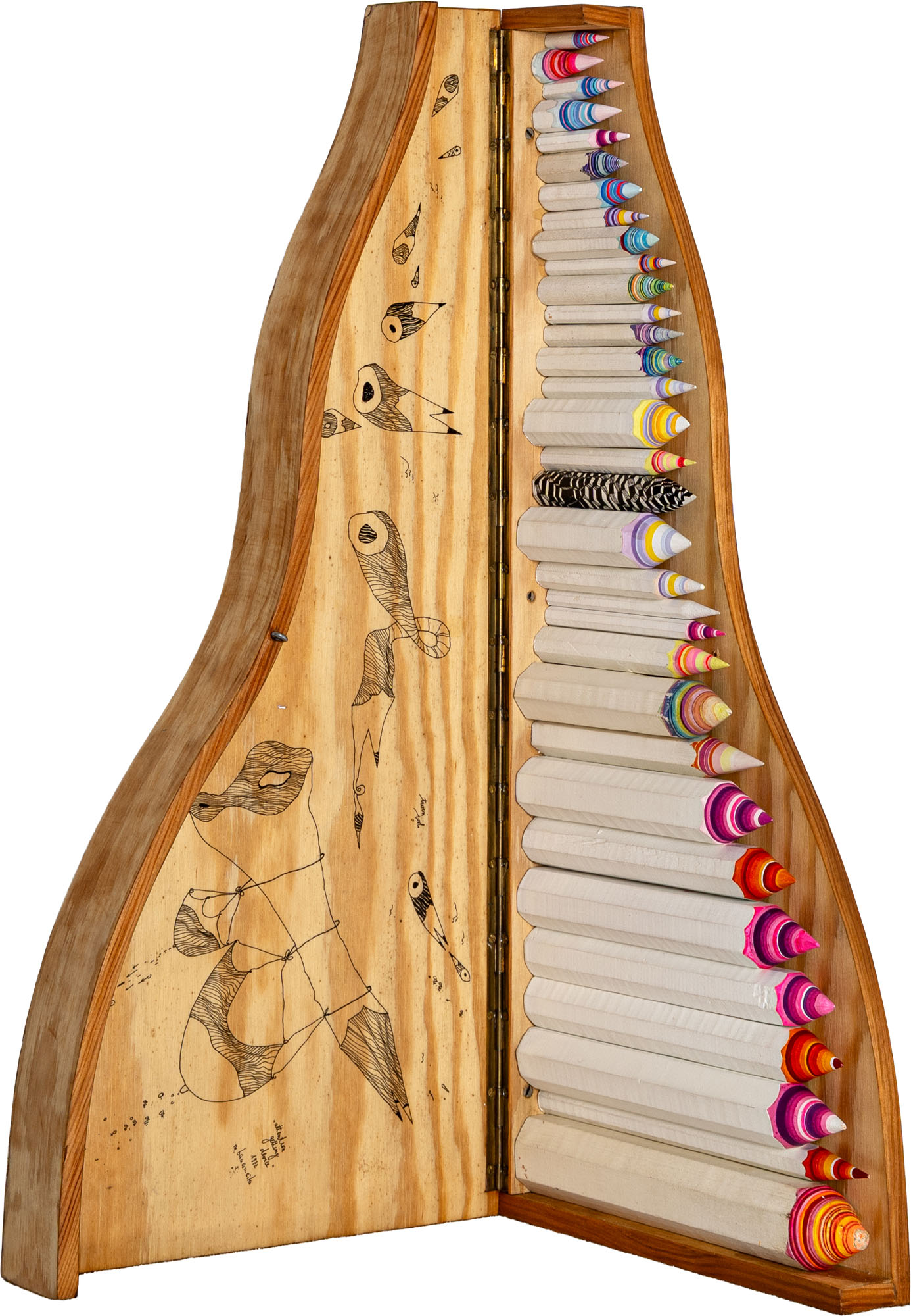 MARY BAUERMEISTER(1934 - 2023)Attention getting device1972Scultura in legno sagomato e dipintoDimensioni scultura aperta: 25 x 50 x 27 cm circaDimensioni scultura chiusa: 25 x 50 x 5 cmOpera accompagnata da certificato di autenticità firmato dall'artistaPROVENIENZA:Studio Gariboldi, Milano (etichetta sotto la base)Collezione privata, Pavia