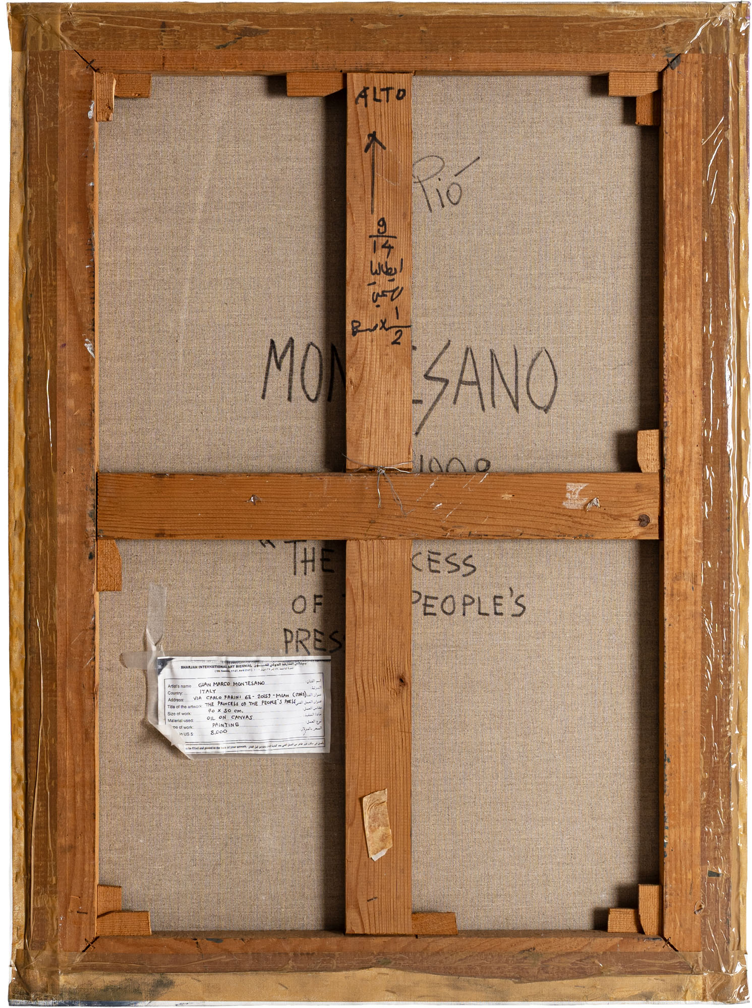 GIAN MARCO MONTESANO(1949)The princess of the people's press1998Tecnica mista su tela100 x 74 cmFirma, data e titolo al retroPROVENIENZA:Collezione privata, Milano