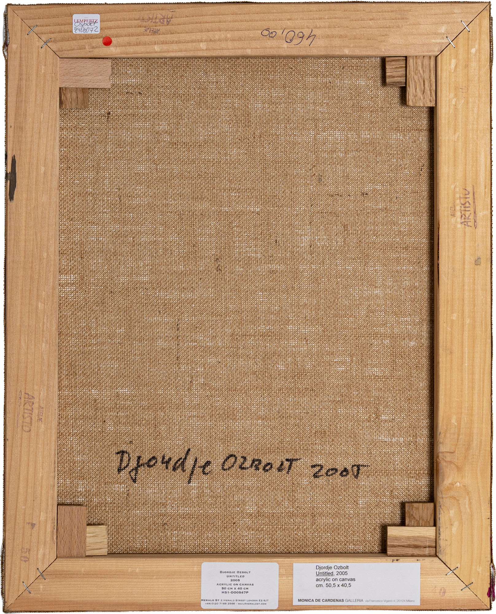 DJORDJE OZBOLT(1967)Senza titolo2005Acrilico su tela50 x 40 cmFirma e data al retroPROVENIENZA:Herald St., Londra (etichetta al retro)Monica De Cardenas, Milano (etichetta al retro)Collezione privata, MilanoESPOSIZIONI:27 aprile - 27 maggio 2006, Djordje Ozbolt, Monica De Cardenzas, Milano