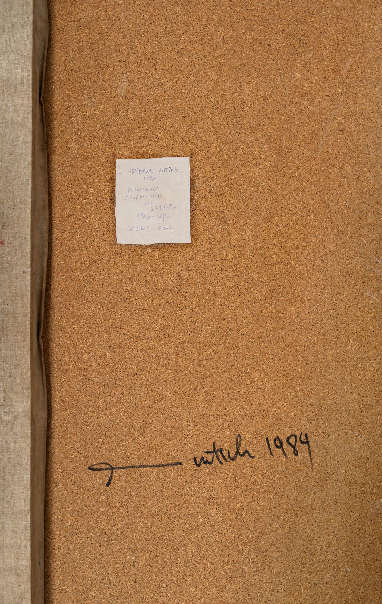 HERMANN NITSCH(1938 - 2022)Tragbahre1984Sangue su tessuto applicato su legno250 x 50 cmFirma e data al retroOpera accompagnata da certificato di autenticità a cura della Galerie Kunst&Handel, GrazPROVENIENZA:Galerie Kunst&Handel, GrazCollezione privata, PaviaESPOSIZIONI:7 - 28 febbraio 2015, Body, Il corpo come mezzo e soggetto dell'arte contemporanea, Padiglione delle Arti, Marcon (Venezia)BIBLIOGRAFIA:V. Loers, H. Milesi, Hermann Nitsch. Malaktionen und Relikte 1963-1994, Galerie Kurt Kalb, 1998, Vienna, n. 83D. Gavagnin, W. Montini (a cura di), Body, Il corpo come mezzo e soggetto dell'arte contemporanea, catalogo della mostra tenutasi presso il Padiglione delle Arti, Marcon (Venezia), Silvana Editoriale, Milano, 2015, n. 59