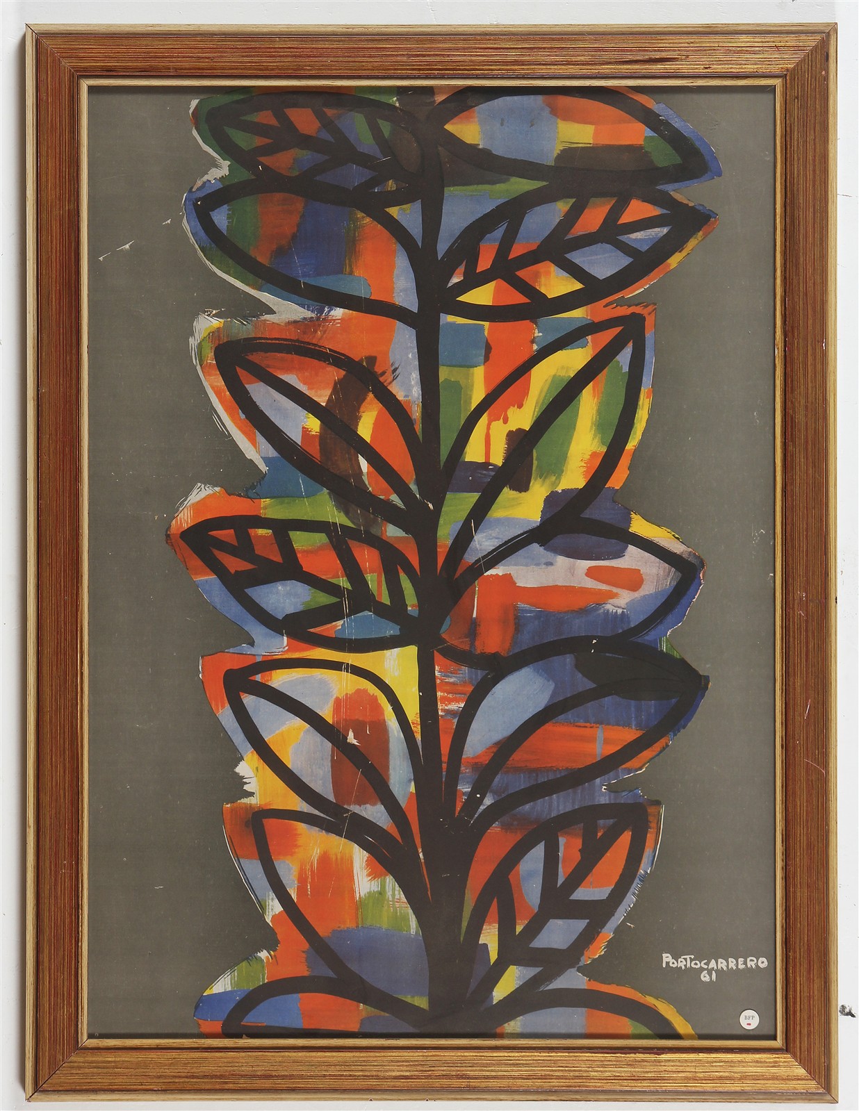 PORTOCARRERO RENE' (1912 - 1986) Composizione. 1961. Litografia. Cm 72,00 x 52,00. Firma e anno in basso a destra. Graffi.