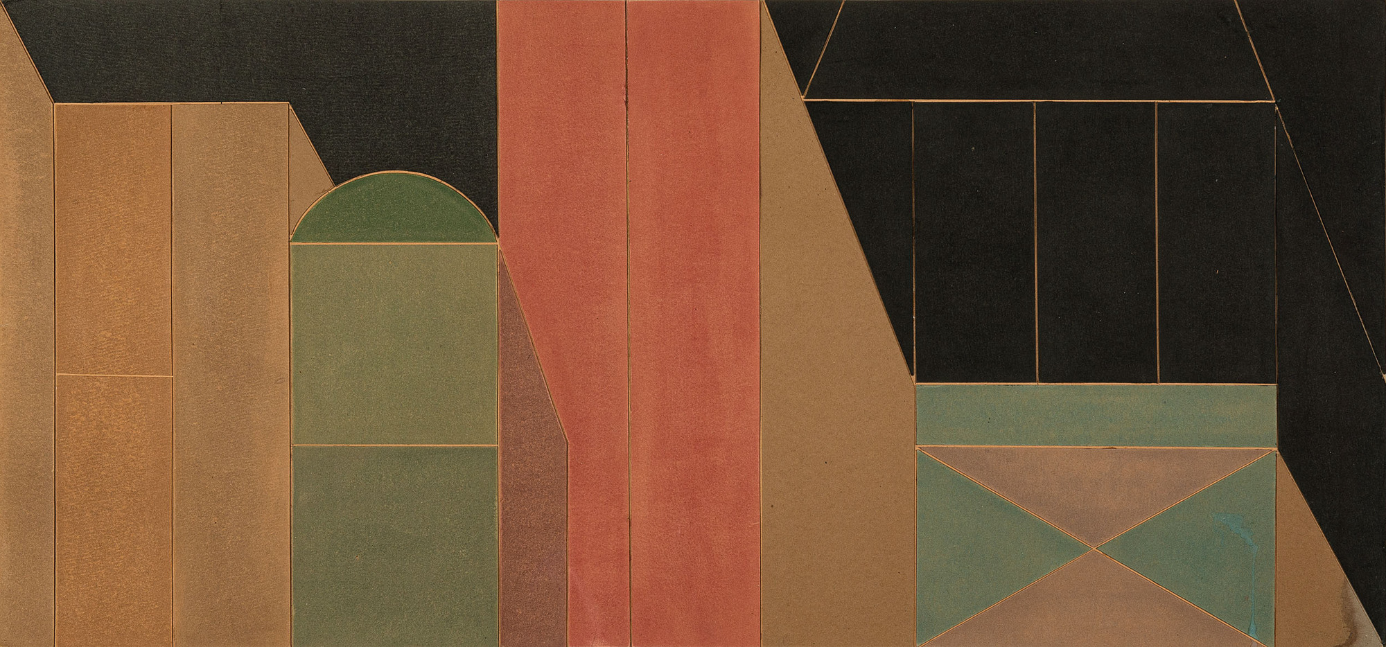 Acquerello e collage su cartone, cm 56,2 x 120,3
