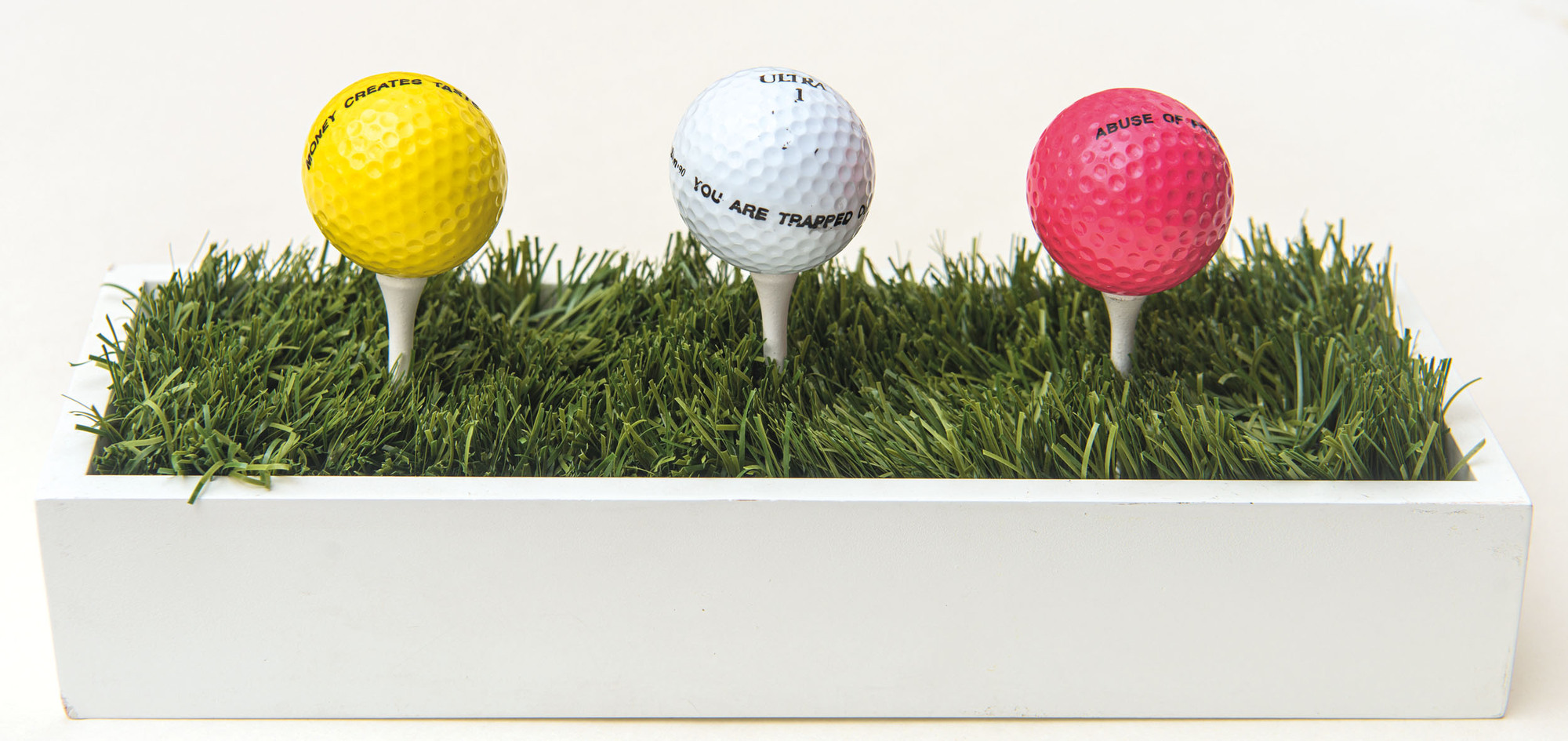 Palline da golf in legno laccato, plastica, stampate a trasferimento, cm 9,6 x 33,3 x 12