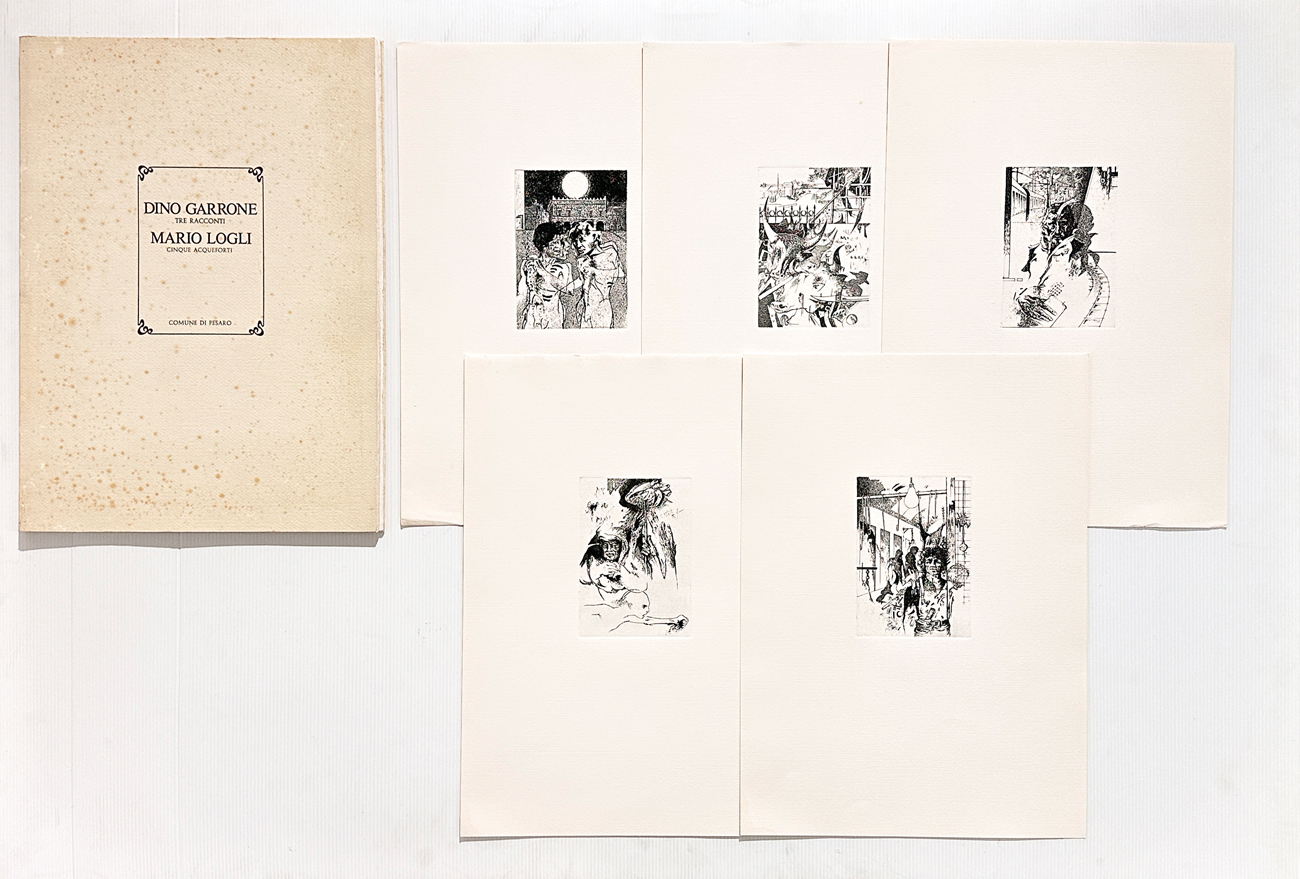 Edizione d'arte contenente 3 racconti di Dino Garrone illustrati da 5 acqueforti di Mario Logli