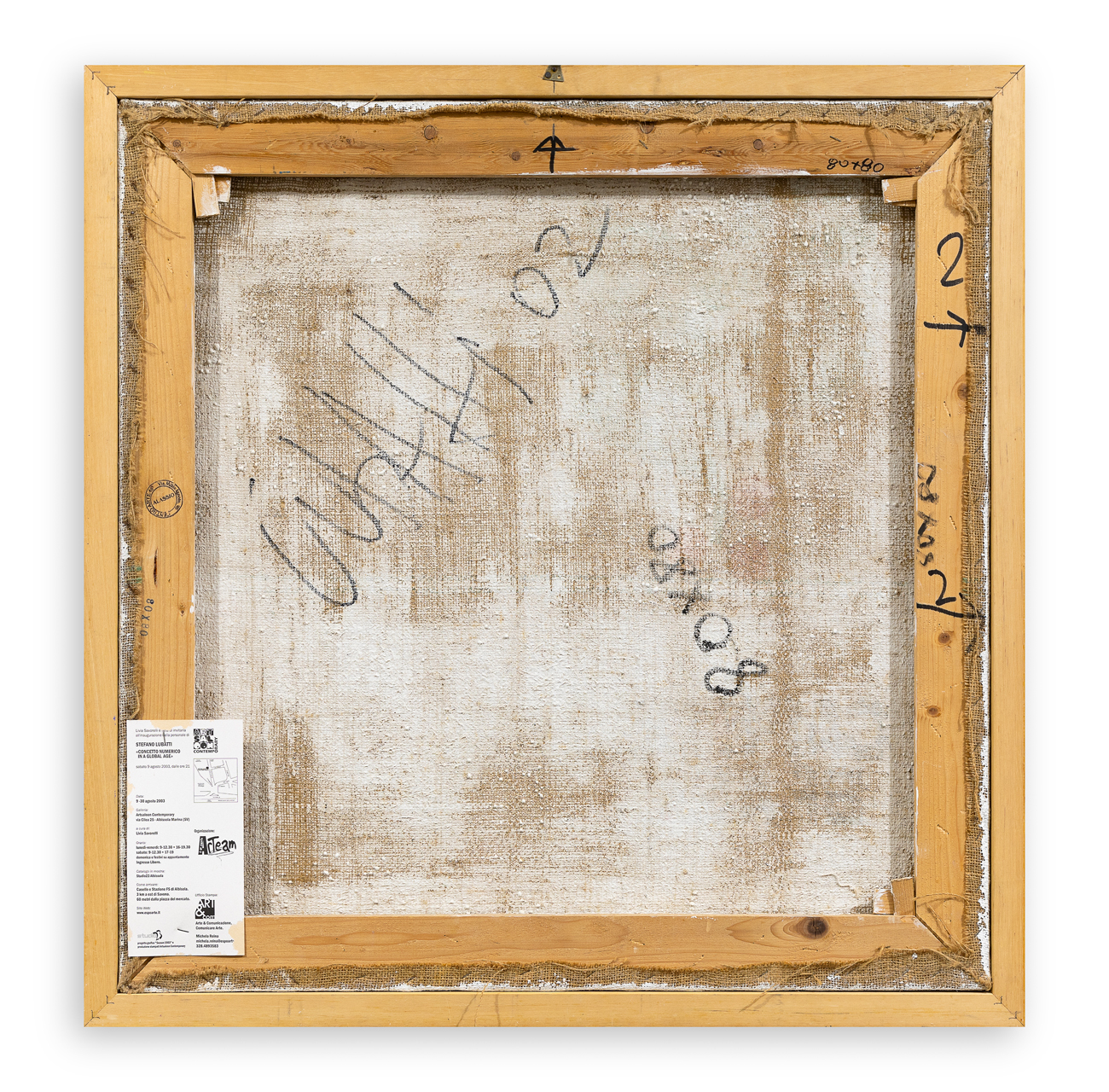 Firma, datazione, misure e indicazioni per il posizionamento al retro