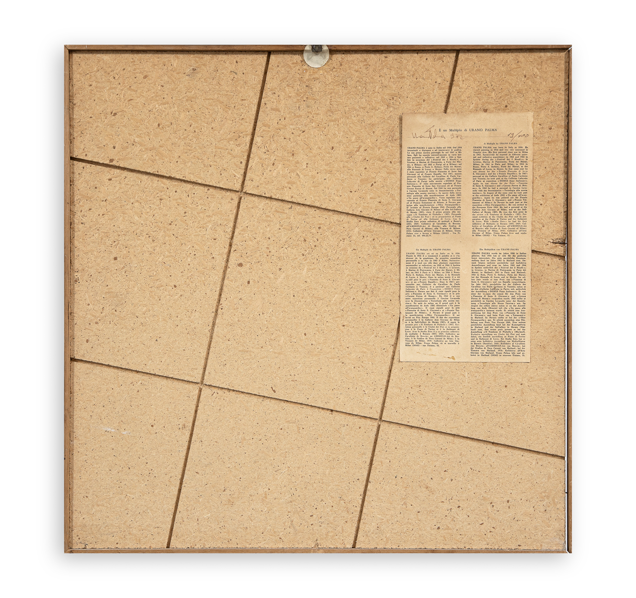 Etichetta recante datazione (Natale 1972) e numerazione (Esemplare 19/100) a biro al retro