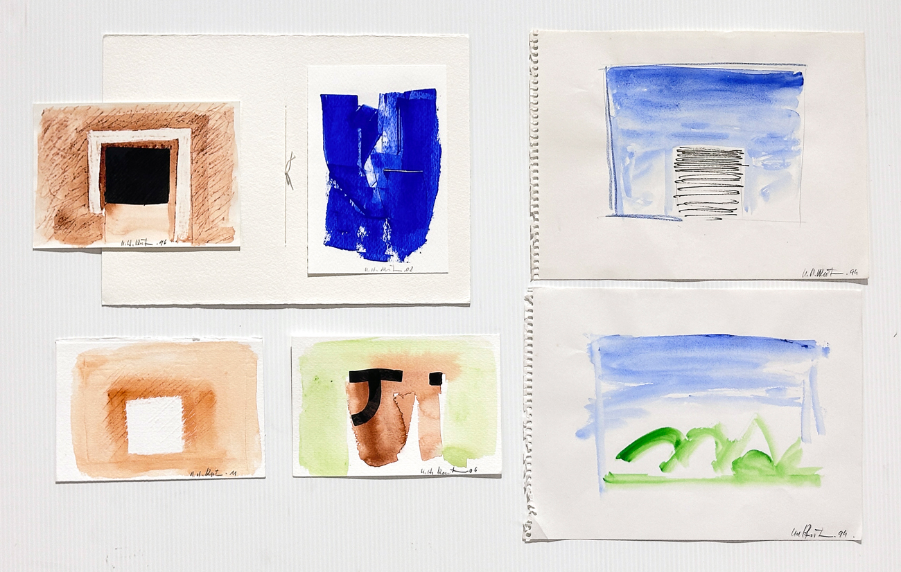 Lotto unico di 5 acquerelli su cartoncino, ciascuno recante firma e datazione al fronte