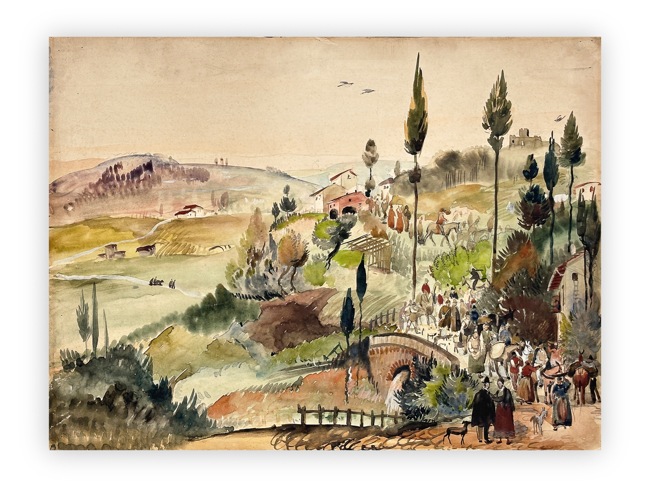 Opera senza cornice, presenta lievi difetti perimetrali e sporco superficiale