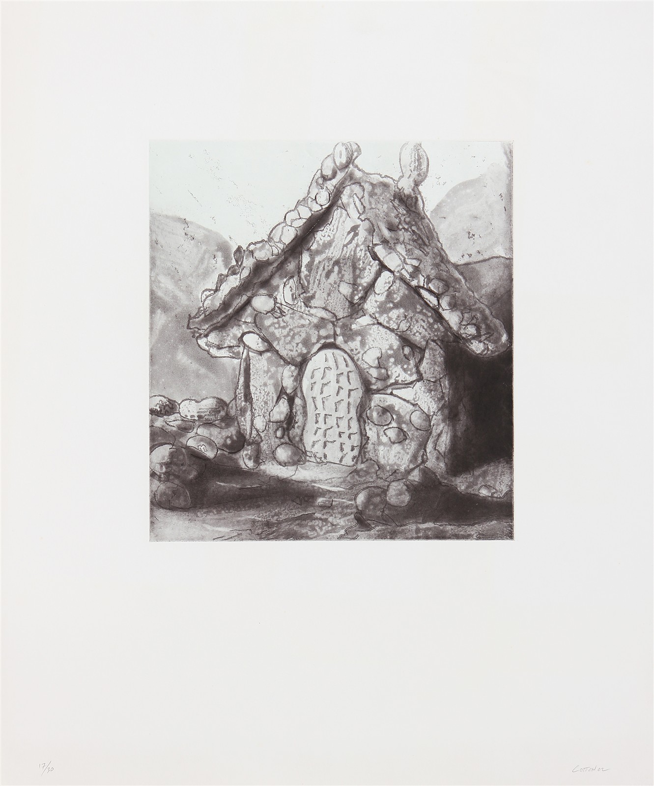 COTTON WILLIAM Peanut buttle brittle house. Acquatinta e punta secca. Cm 28,00 x 30,00. 17/30. Tiratura e firma matita in basso. Timbro a secco Burnet Edition. Cornice presente