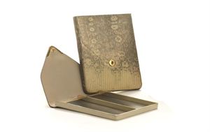 CARTIER Portasigarette in rettile di cobra di colore chiaro timbrato Cartier all'inteno, chiusura a pattina con bottone, anni '50 Cm 11,5x9 1950's cobra skin cigarette holder with envelope closure and button with with "Cartier"stamped on the inside