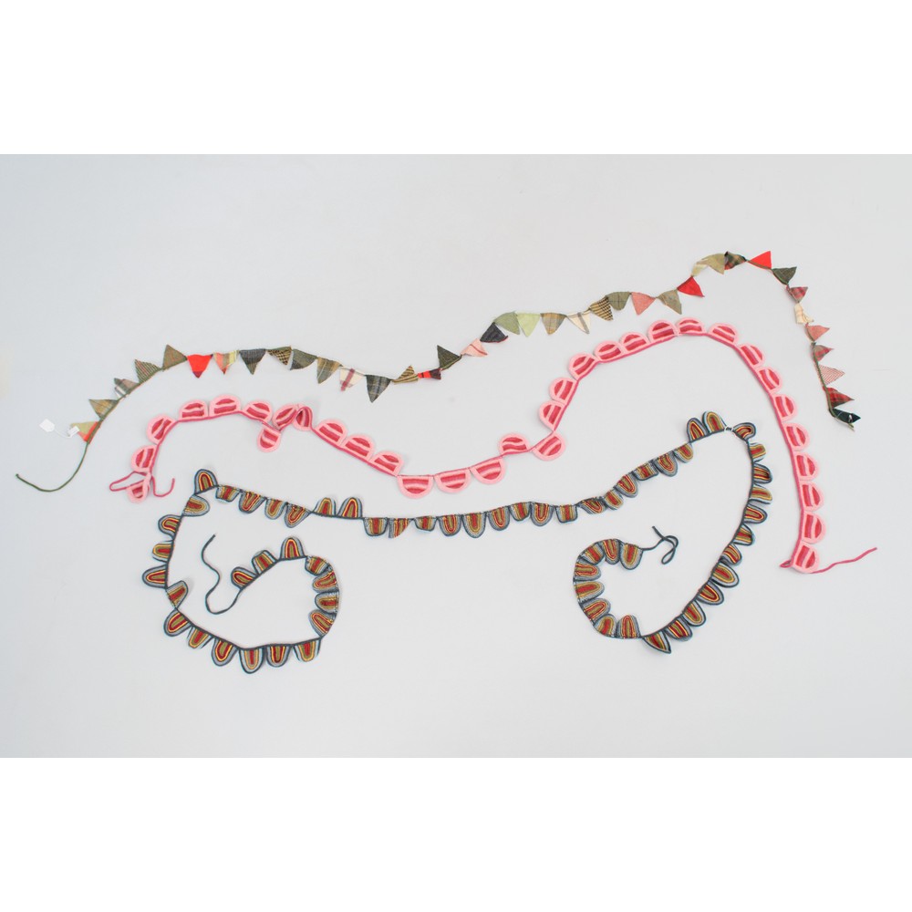 Tre accessori in puro Cachemere una rosa e lampone; una con toni grigio, celeste, marrone, giallo, verde e rosso; una con triangoli in tessuto di diverso colore. Mai indossate.
