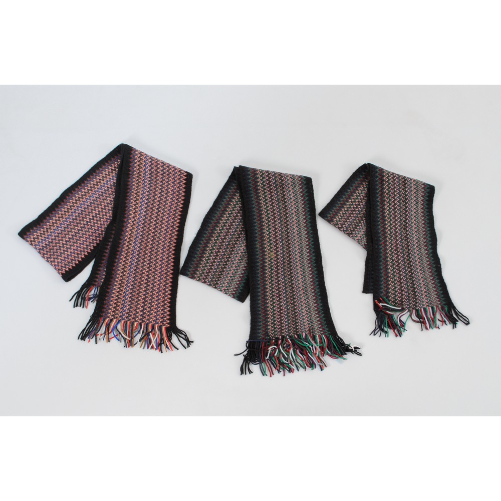 Tre sciarpe in puro Cachemere di diversi colori con lavorazione a spina di pesce, frange. Mai indossate. Marchio di produzione.