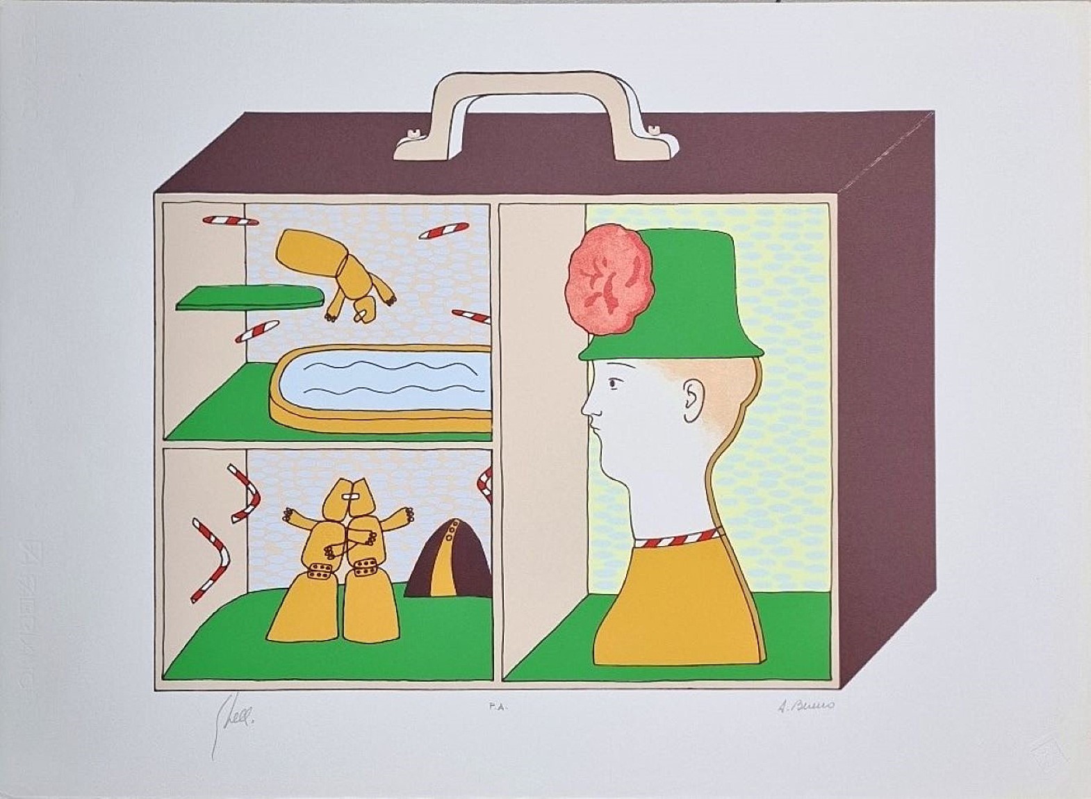 GHELLI GIULIANO e BUENO ANTONIO "Senza titolo" Serigrafia a quattro mani su cartoncino cm 70x50. Firmata sul fronte in basso a destra "Ghelli", a sinistra "Bueno", tiratura P.A. e timbro a secco della Calcografica Studio.