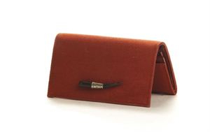 YSL Porta carte di credito, in canavas rosso, modello Mombasa, piccolo corno appliccato sulla pattina di chiusura, ultimo decennio Cm 8x11 red canvas, Mombasa model, credit card holder with small horn appliqué on closure. last decade
