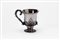 con presa sagomata e decorata, parte superiore liscia terminante con cesellatura a foglie e fiori sorretta da base tornita con piede ulteriormente cesellato.