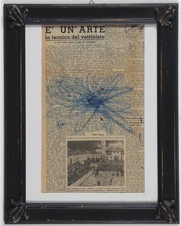 CRIPPA ROBERTO GAETANO (1921 - 1972) E' un' arte la tecnica del vetrinista. 1951. Tecnica mista su carta. Cm 22,00 x 37,00. Al retro firma per autentica e data. Autentica su fotografia a cura del figlio Roberto Gaetano Crippa Junior. Cornice presente