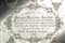 di forma ottagonale, con ringhiera traforata e incisa a nastri e motivi geometrici, cavetto finemente inciso a tralci floreali, cornici e greche, al centro dedica al Sindaco di Dublino Sir George Moyers, prese laterali mosse e cesellate.
