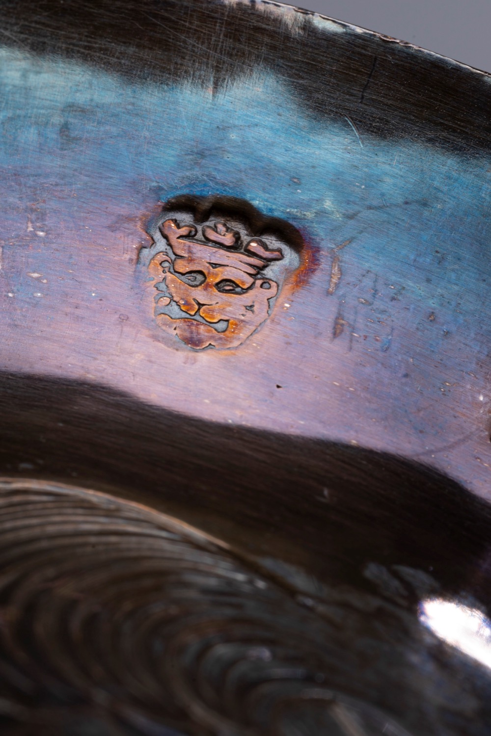 a due anse laterali mosse, fronte con stemma araldico inciso. (Lievi difetti).