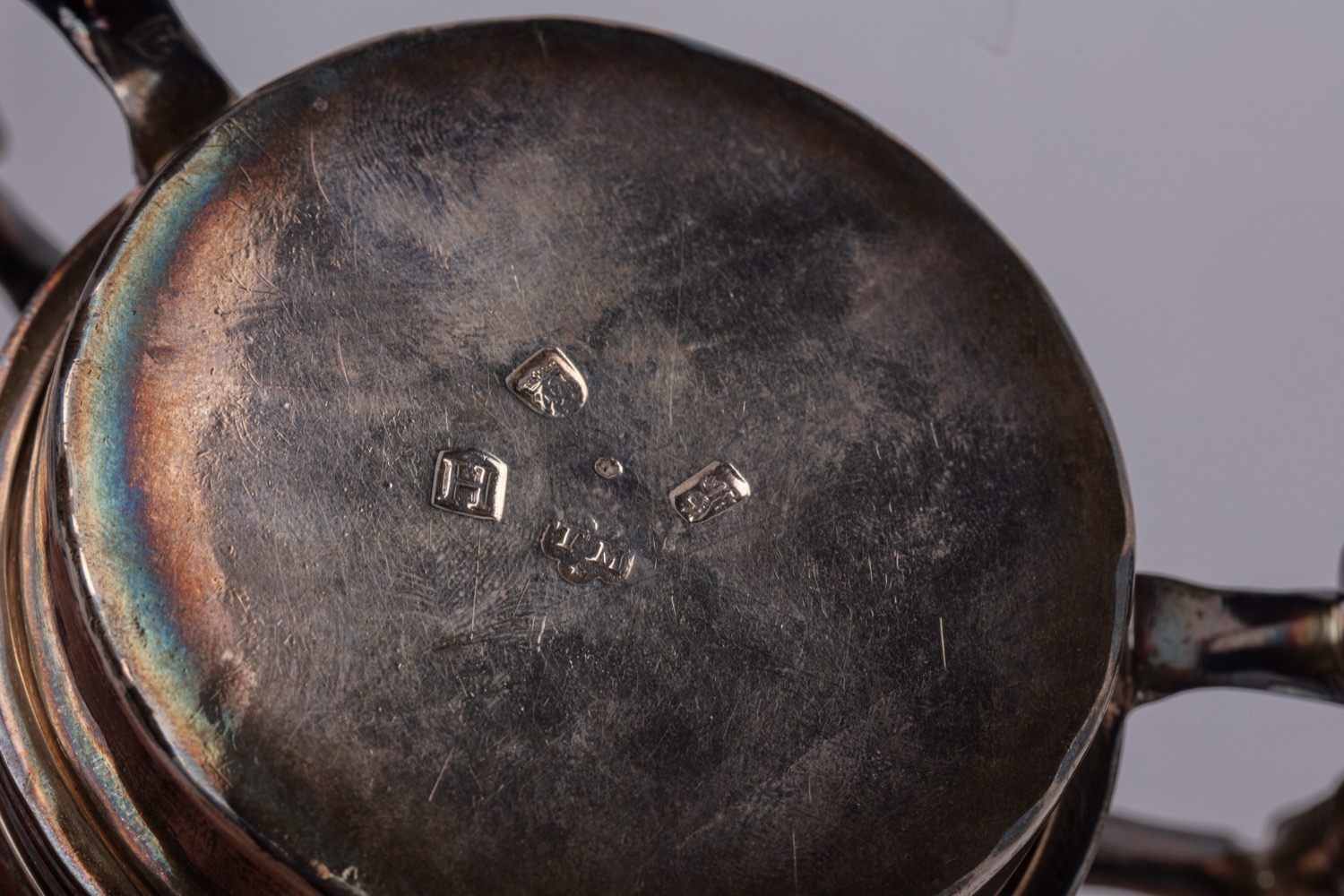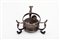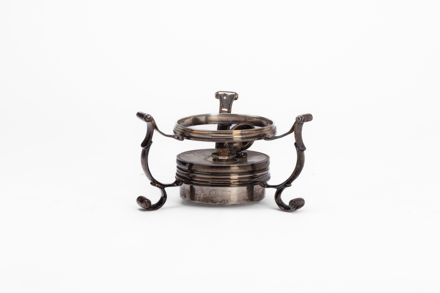 con struttura a tre gambe laterali mosse, al centro fornelletto tornito con incisione a stemma e monogramma.