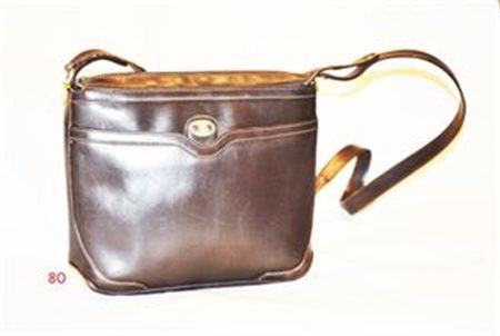 CELINE Borsa in pelle marrone tracolla con chiusura a cerniera e tasca esterna, fibbia dorata con logo CELINE, anni '70 Cm 22x26 1970's brown leather shoulder bag with outer pocket, zip closure and gold "Celine" inscribed clasp