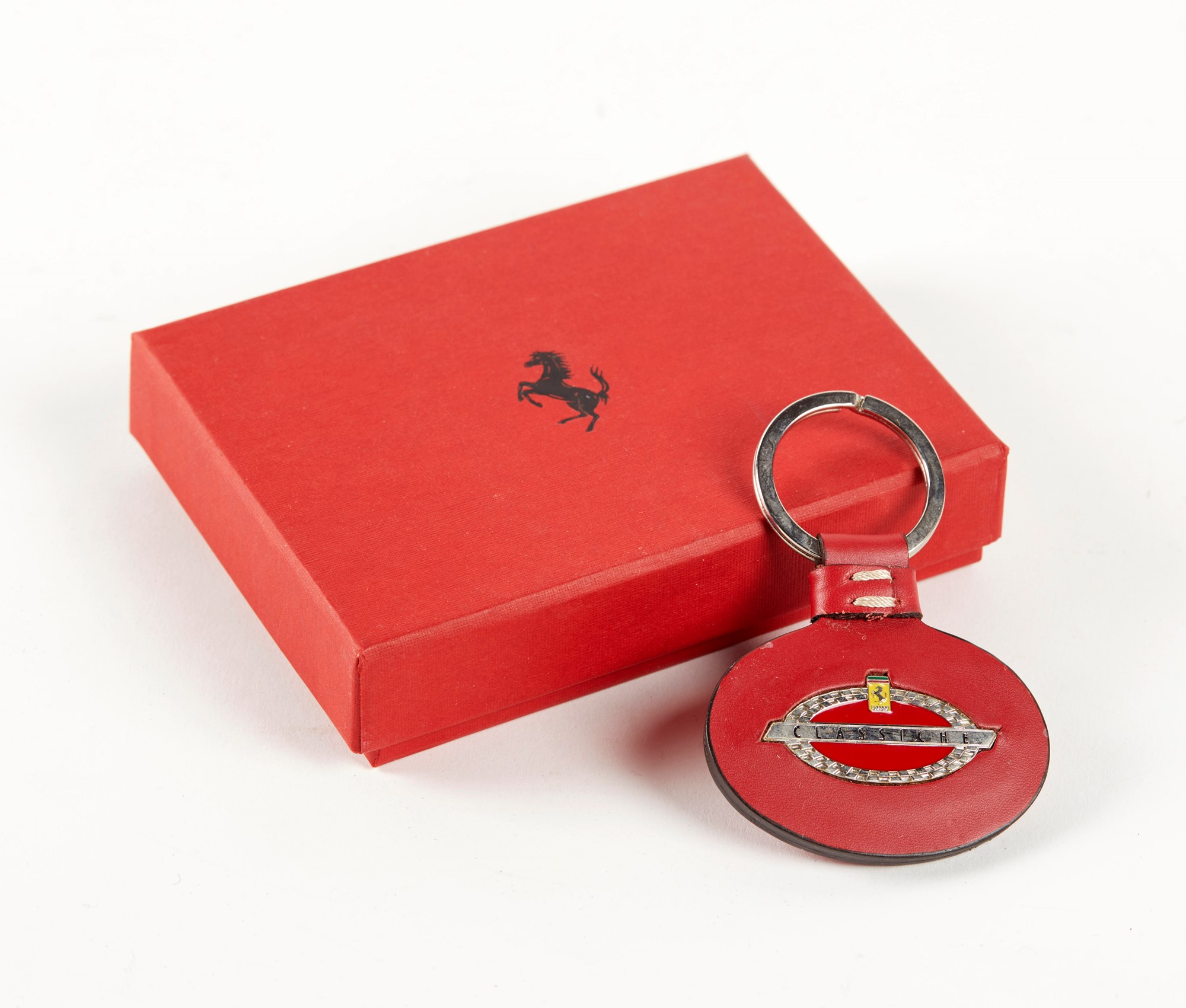 FERRARI Portachiavi Ferrari per la Mille Miglia 2007 in pelle rossa. Corredato di scatola. (lievi difetti)