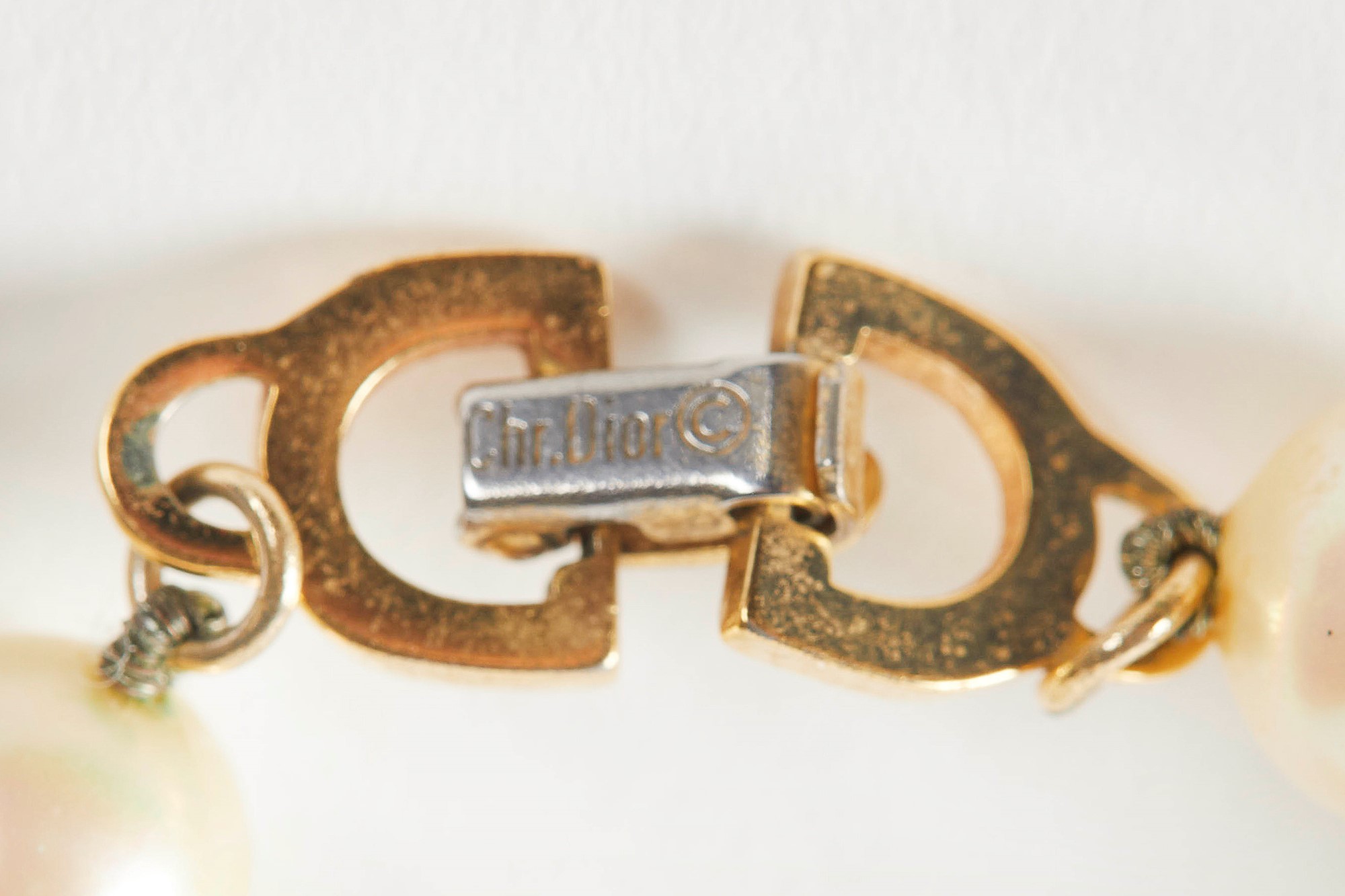 CHRISTIAN DIOR Collana di perle sintetiche e chiusura in metallo. Lunghezza collana: cm 83. Reca marchio Chr. Dior. (difetti)