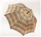 BURBERRYS Ombrello in tela nella tipica fantasia della Maison. Lunghezza cm 90. Diametro cm 90. Reca targhetta Burberrys. Corredato di fodera. (lievi difetti)