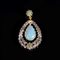 Pendente in argento, parzialmente dorato, centrato da opale cabochon a goccia entro cornice di rosette di diamante e piccoli smeraldi. Peso complessivo 3,4 grammi.