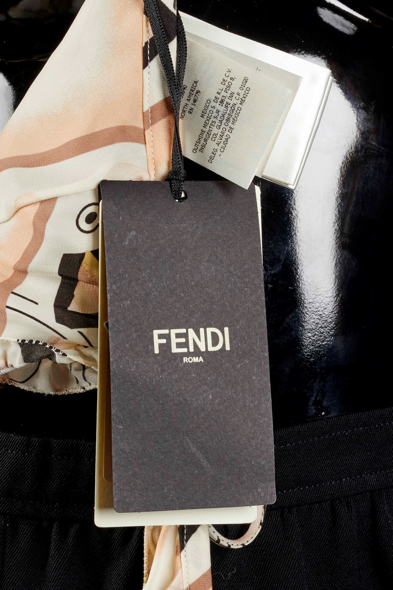FENDI Set composto da camicia e reggiseno in chiffon di viscosa, stampato abstract. Taglia IT 42. Reca etichetta Fendi.