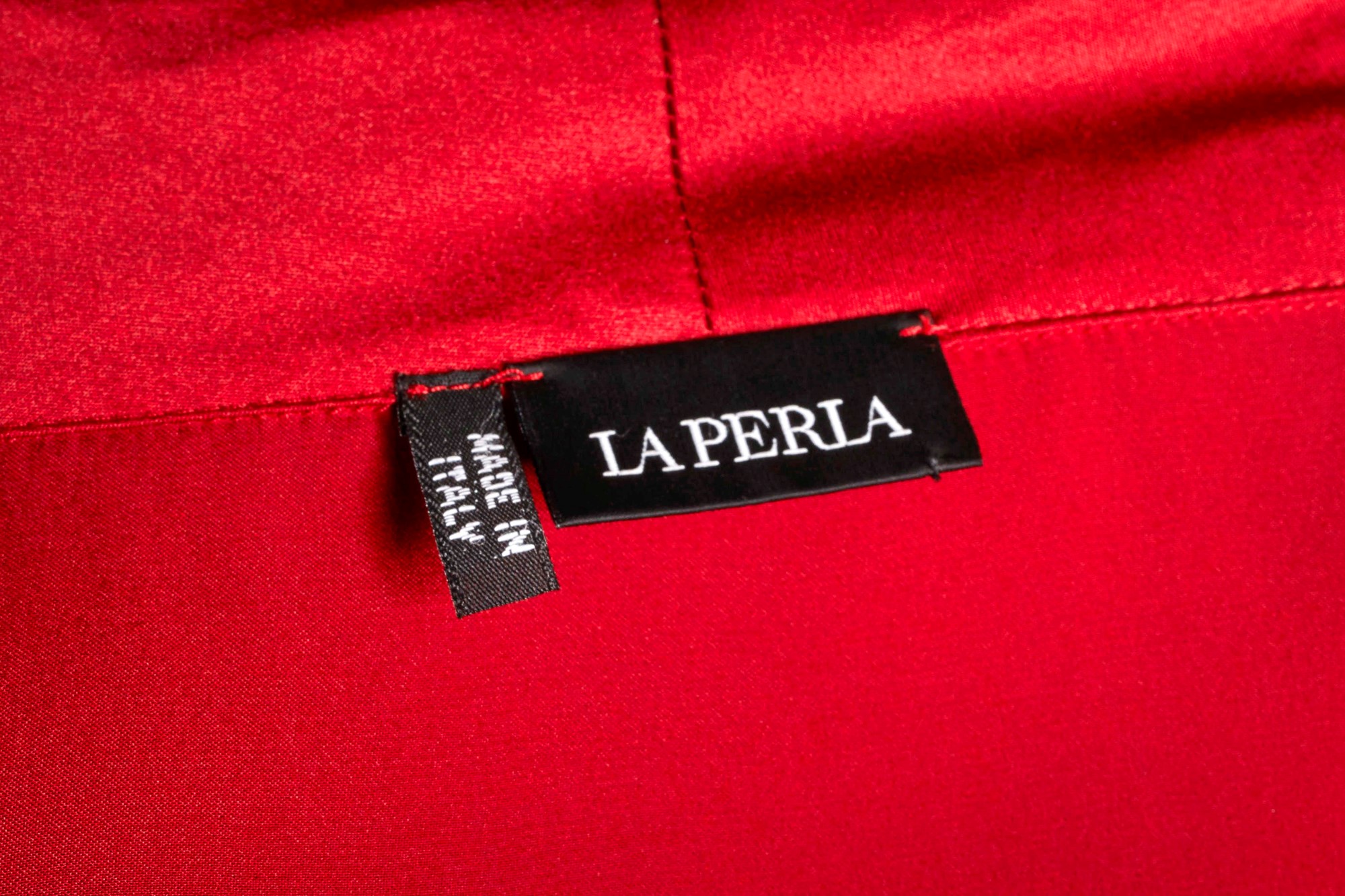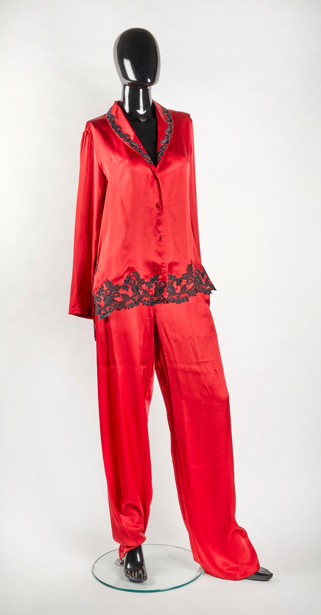 LA PERLA Pigiama in seta rossa e inserti in pizzo. Taglia IT 3 (EU 40). Reca etichetta La Perla.