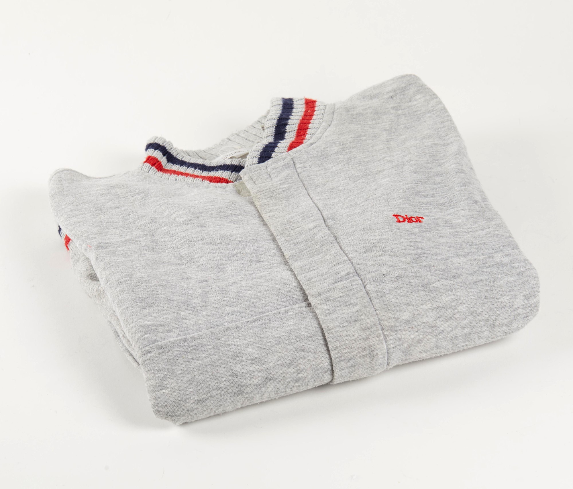 CHRISTIAN DIOR Monsieur Felpa girocollo in misto cotone e polyester grigio. Taglia M. Reca etichetta Christian Dior Monsieur. (lievi difetti)